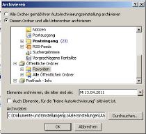 Werden Outlook-Daten archiviert, löscht Outlook innerhalb dieses Vorgangs alle ausgewählten Daten vom Exchange-Server (oder ggf. einem anderen einge-